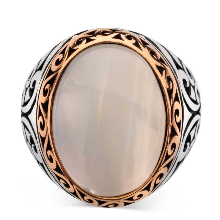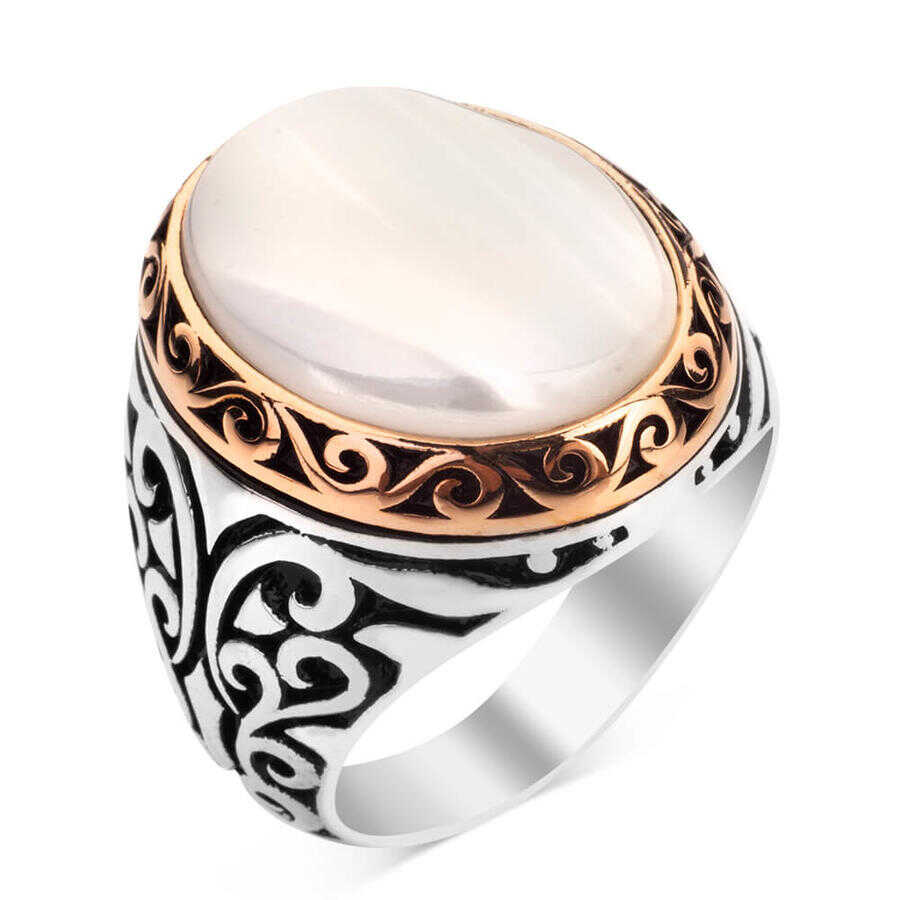 925 Ayar Gümüş Beyaz Sedef Taşlı Yüzük