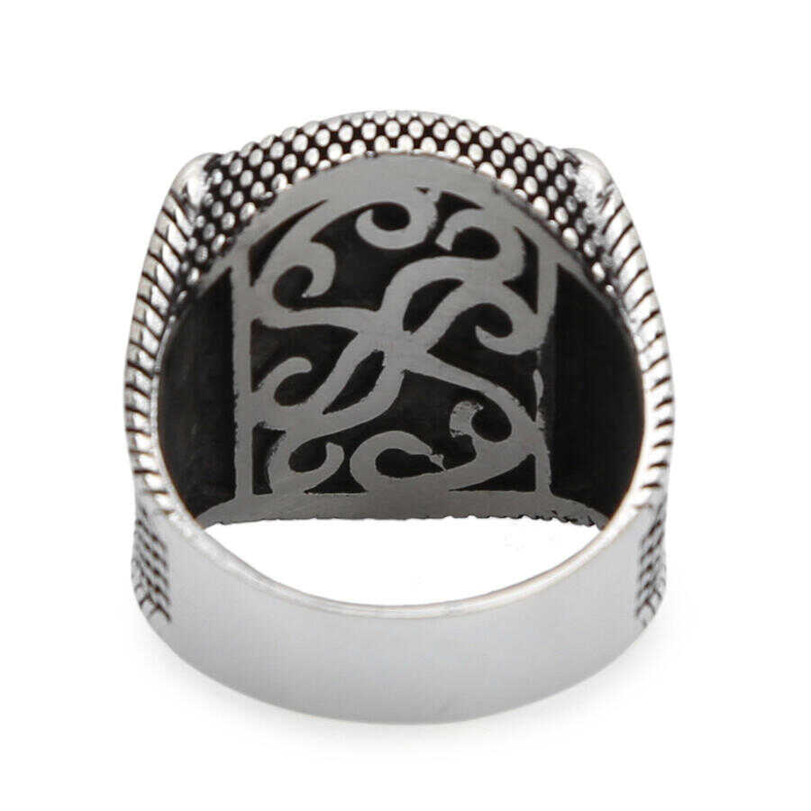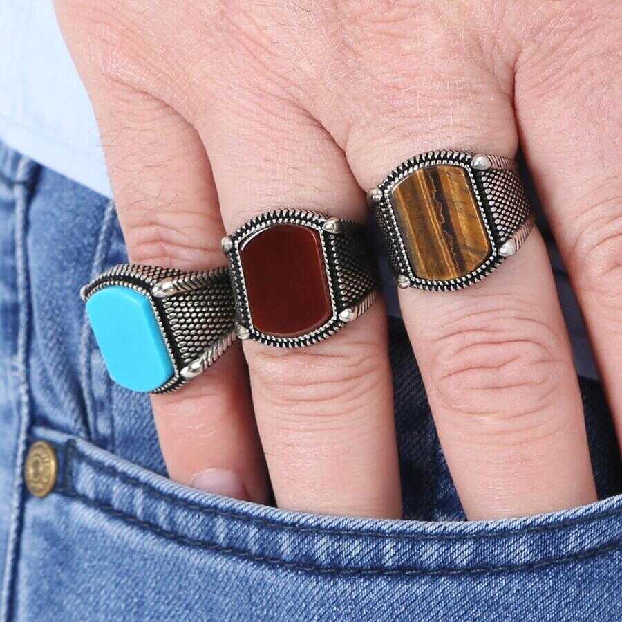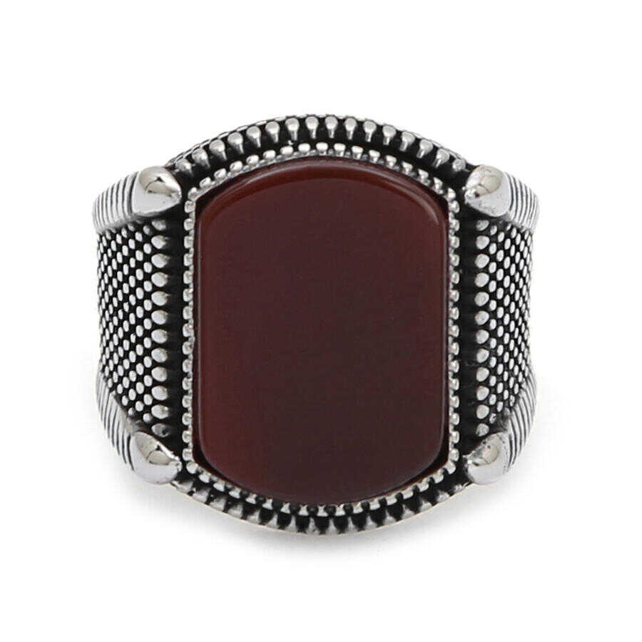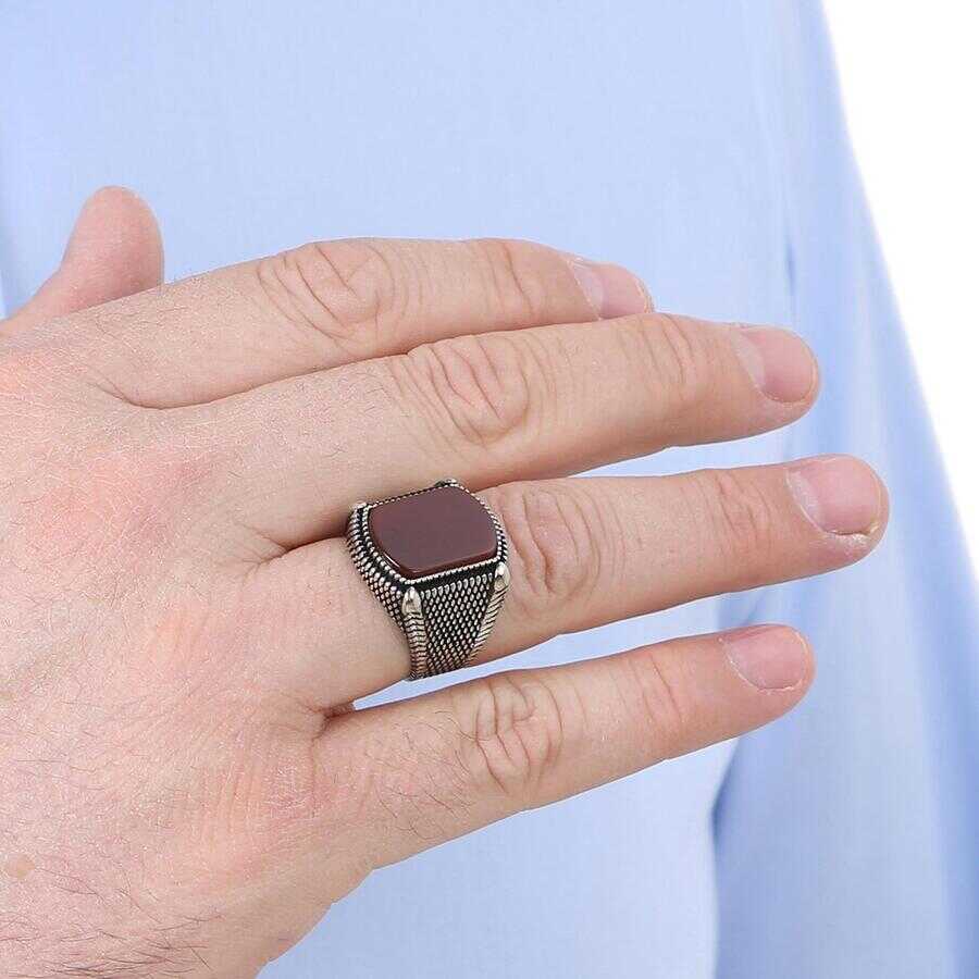 925 Ayar Gümüş Bordo Akik Taşlı Erkek Yüzük