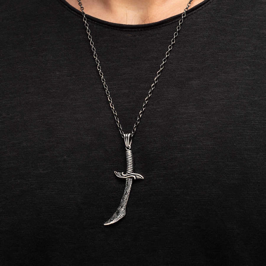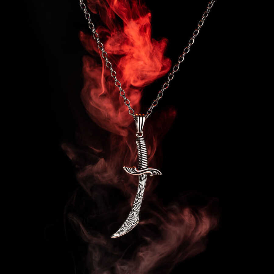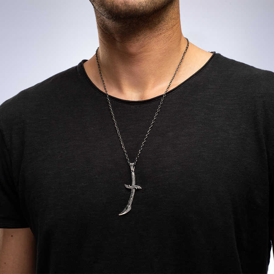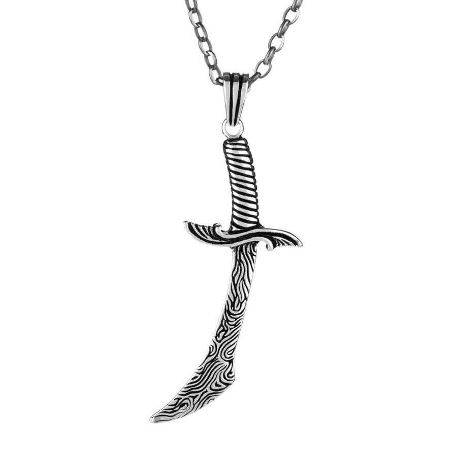 925 Ayar Gümüş Hançer Motifli Erkek Kolye (Kalın Zincirli)