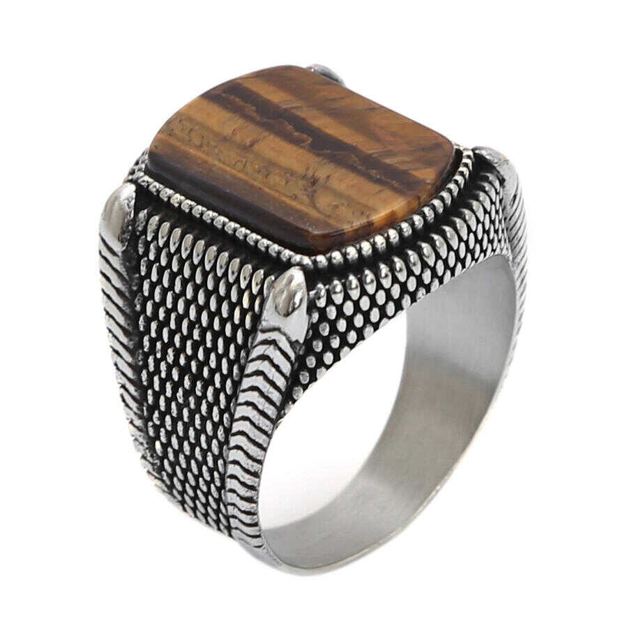 925 Ayar Gümüş Kahverengi Kaplangözü Taşlı Erkek Yüzük Ürün Özellikleri
