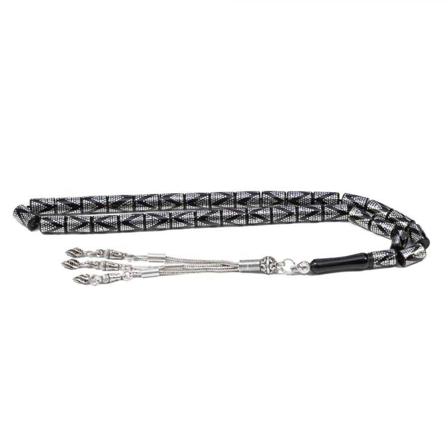 7 x 11 mm tane boyu ve 32 cm tam boy olarak kesme model olarak tasarlanan bu tesbihin imameden uzunluğu ise 22 cm'dir. Tesbih taneleri üzerinde 925 ayar gümüşten piramit kakma işlemeler bulunmaktadır. İster günlük kullanım, ister koleksiyonluk, isterseniz de sevdikleriniz için satın alabileceğiniz bu tesbih, tutkunlarının ömür boyu vazgeçemeyeceği aksesuarlarından biri olacaktır.