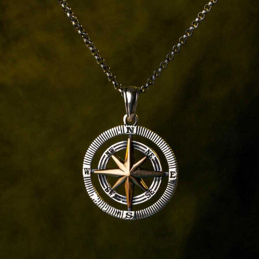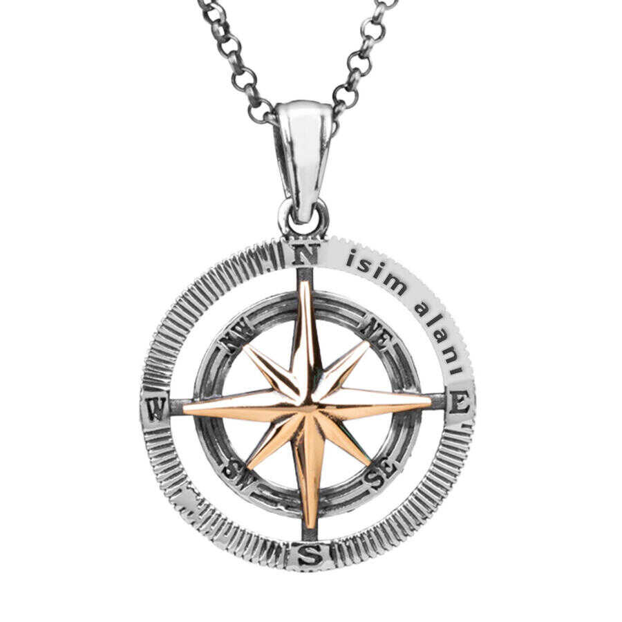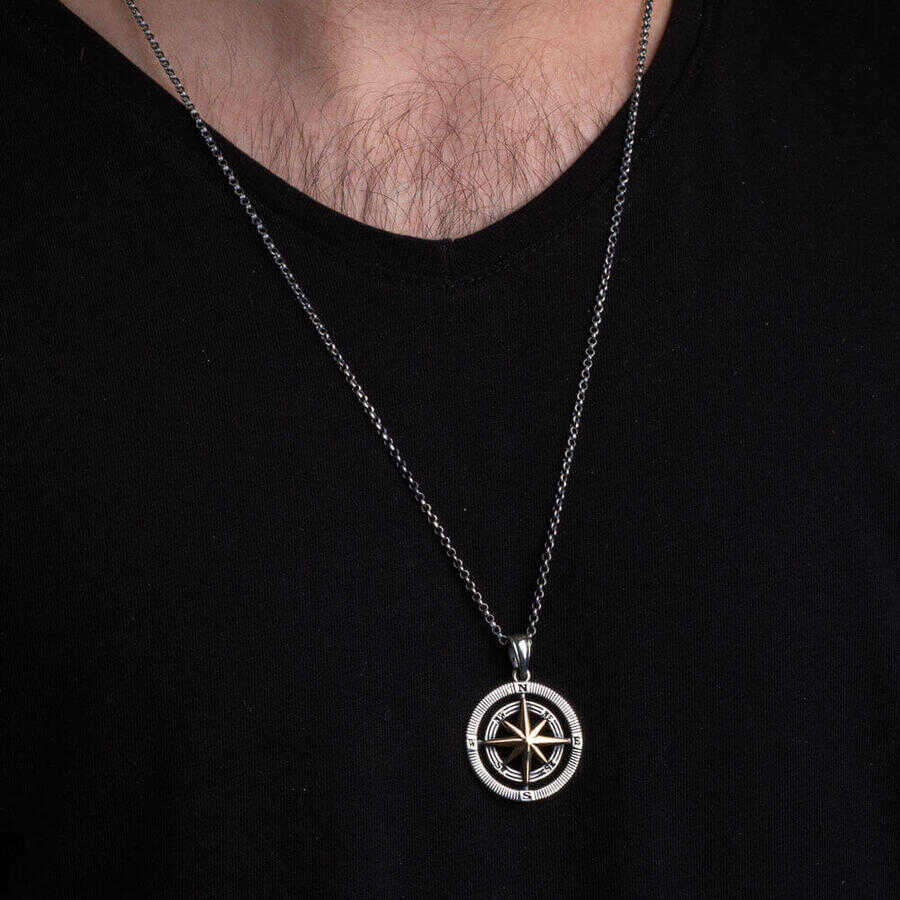 925 Ayar Gümüş Pusula Erkek Kolye (Kalın Zincirli)