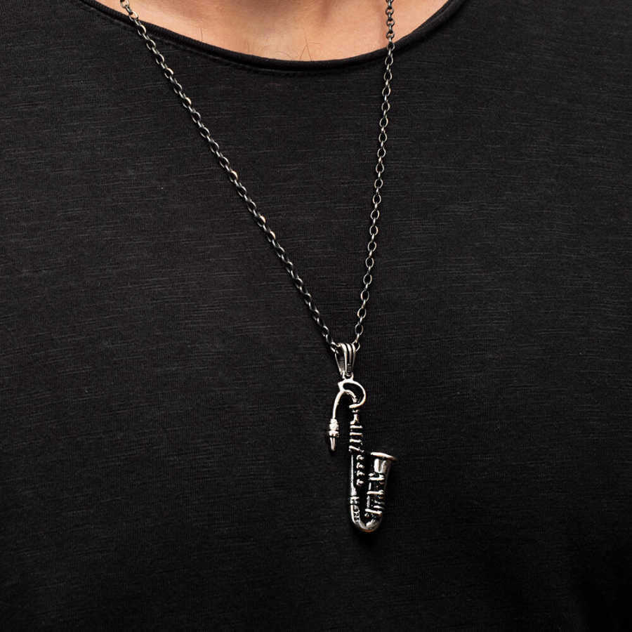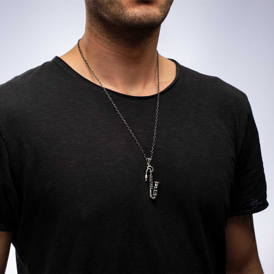 925 Ayar Gümüş Saksafon Erkek Kolye (Kalın Zincirli)