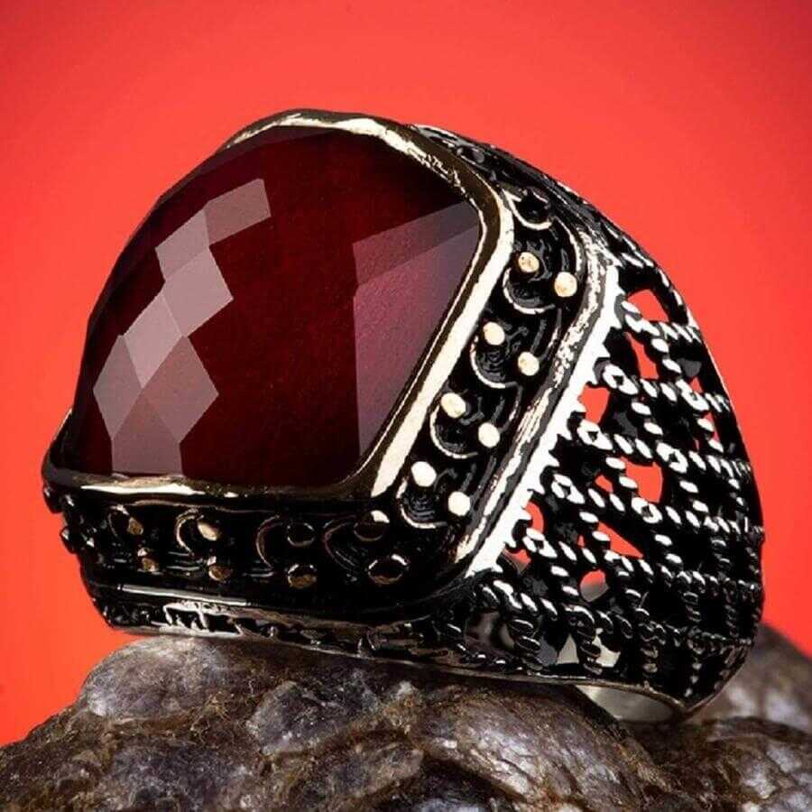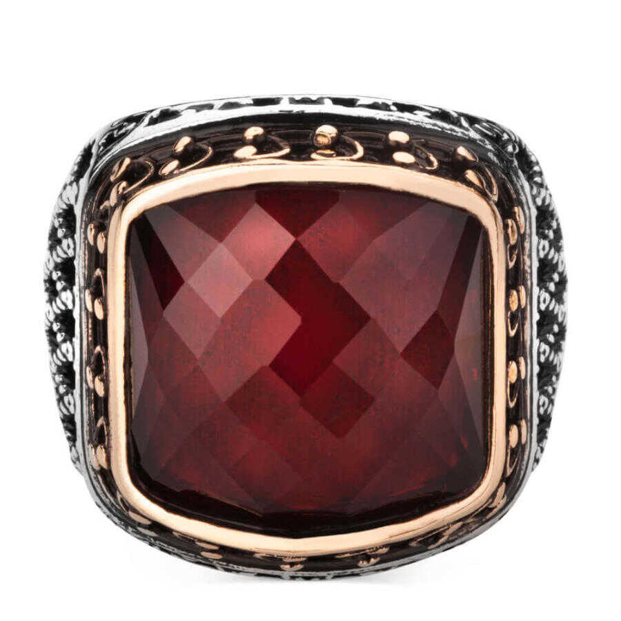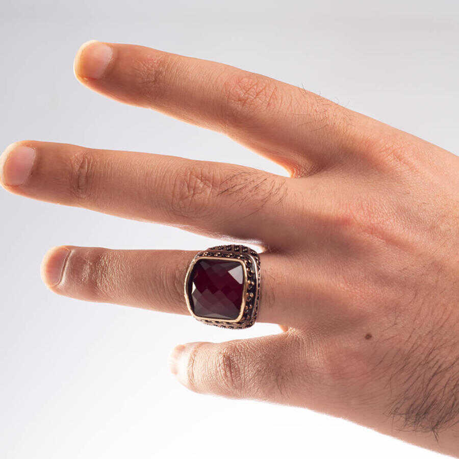 925 Ayar Gümüş Zirkon Kırmızı Taşlı İşlemeli Erkek Yüzük Ürün Özellikleri