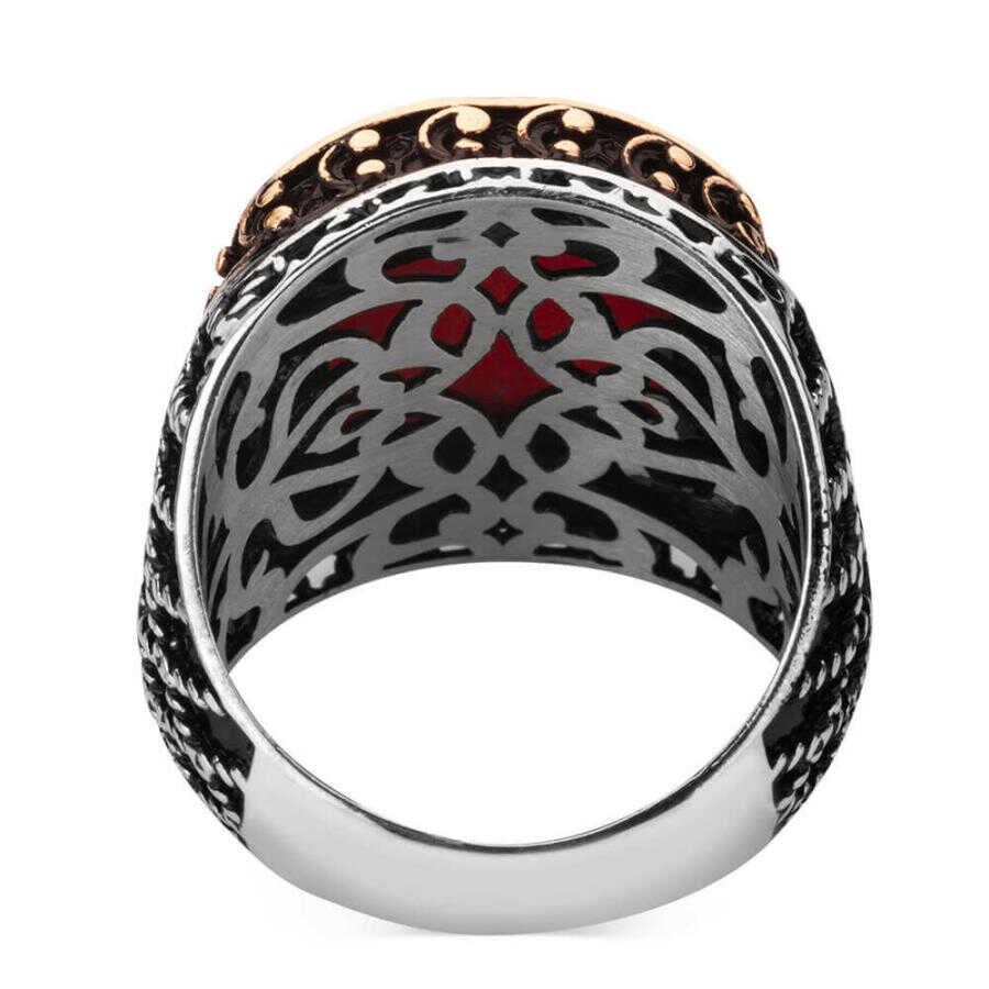 925 Ayar Gümüş Zirkon Kırmızı Taşlı İşlemeli Erkek Yüzük