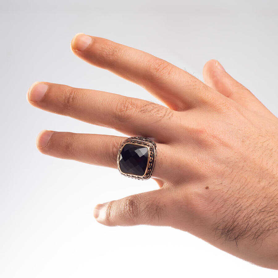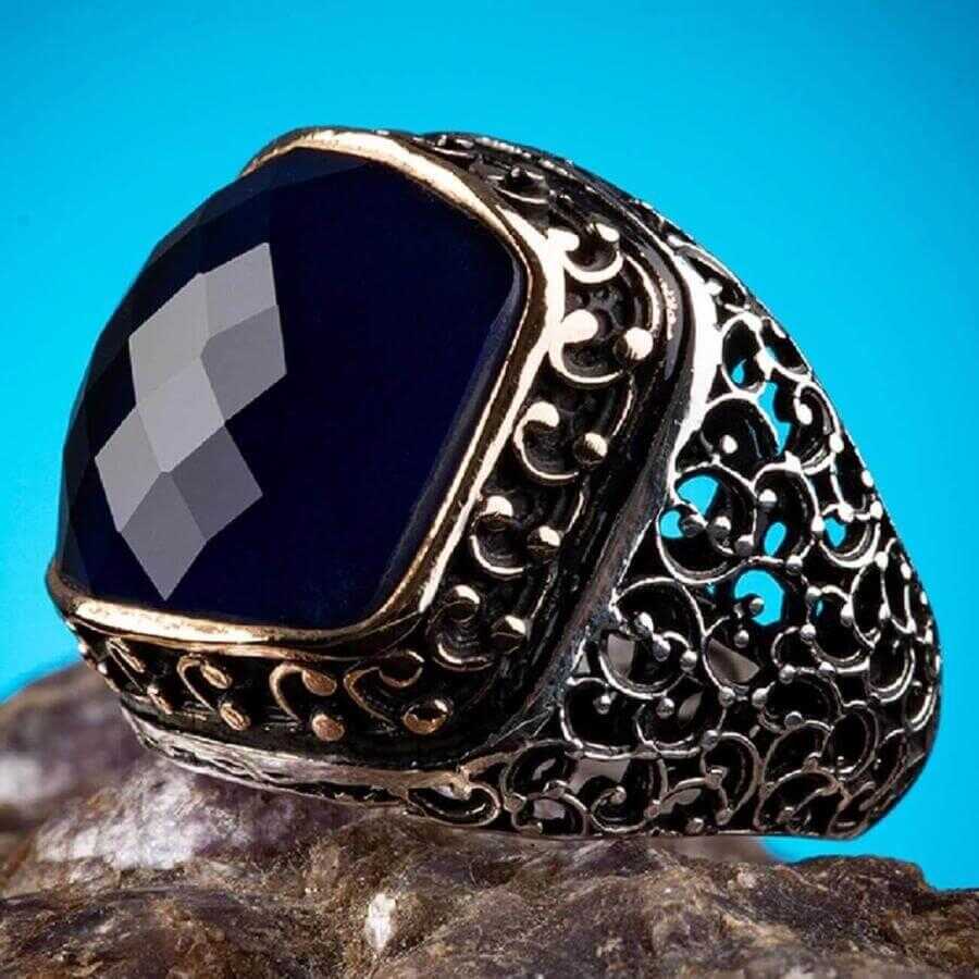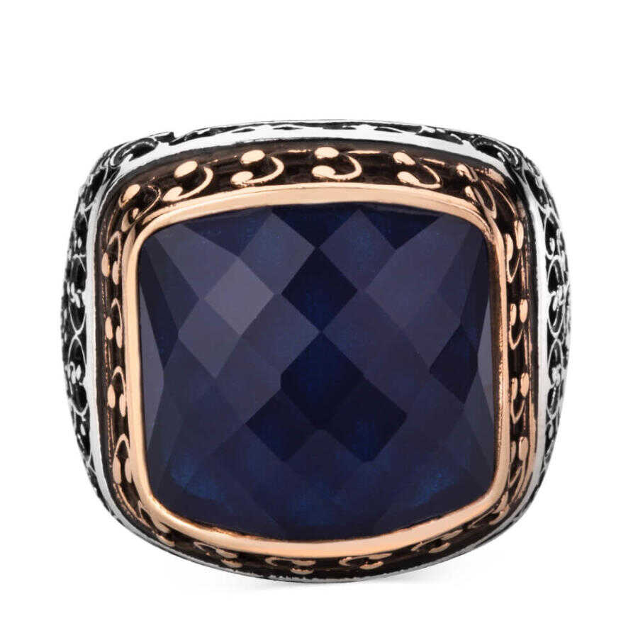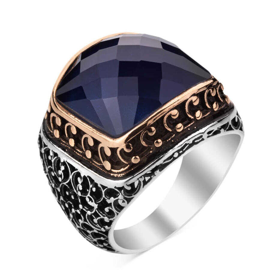 925 Ayar Gümüş Zirkon Mavi Taşlı İşlemeli Erkek Yüzük Ürün Özellikleri