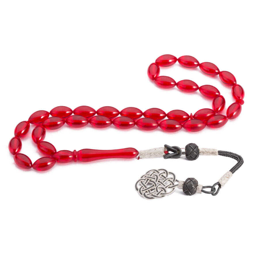 Arpa Kesim Kırmızı Sıkma Kehribar Tesbih