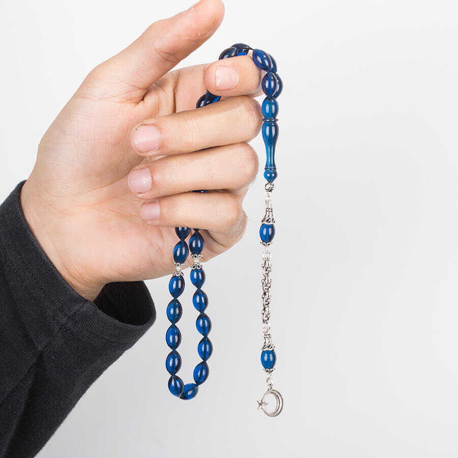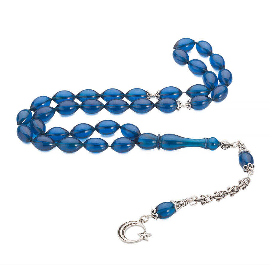 Ay Yıldız Kral Püsküllü Mavi Sıkma Kehribar Tesbih