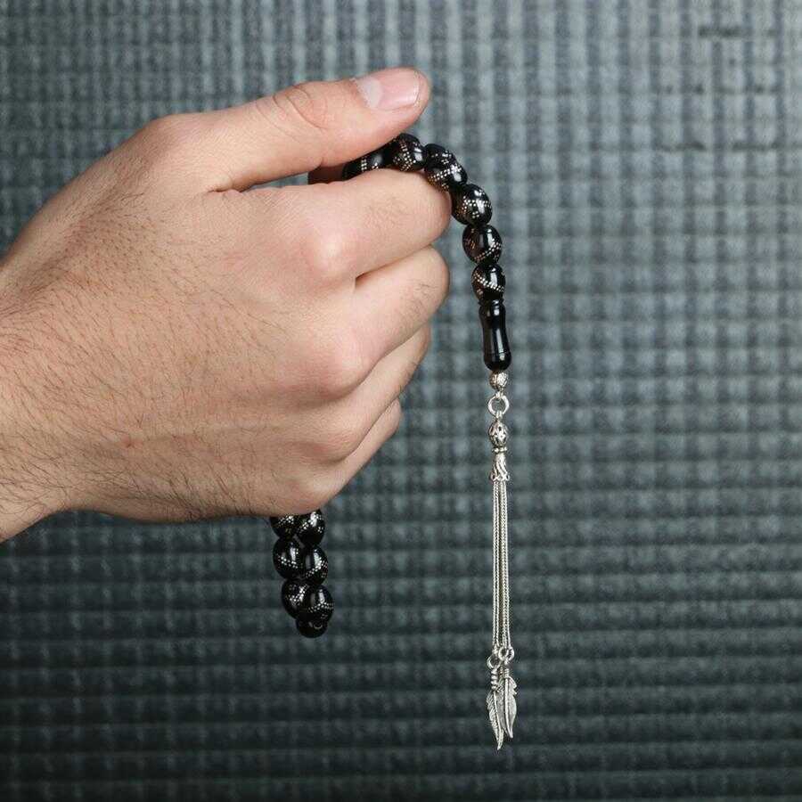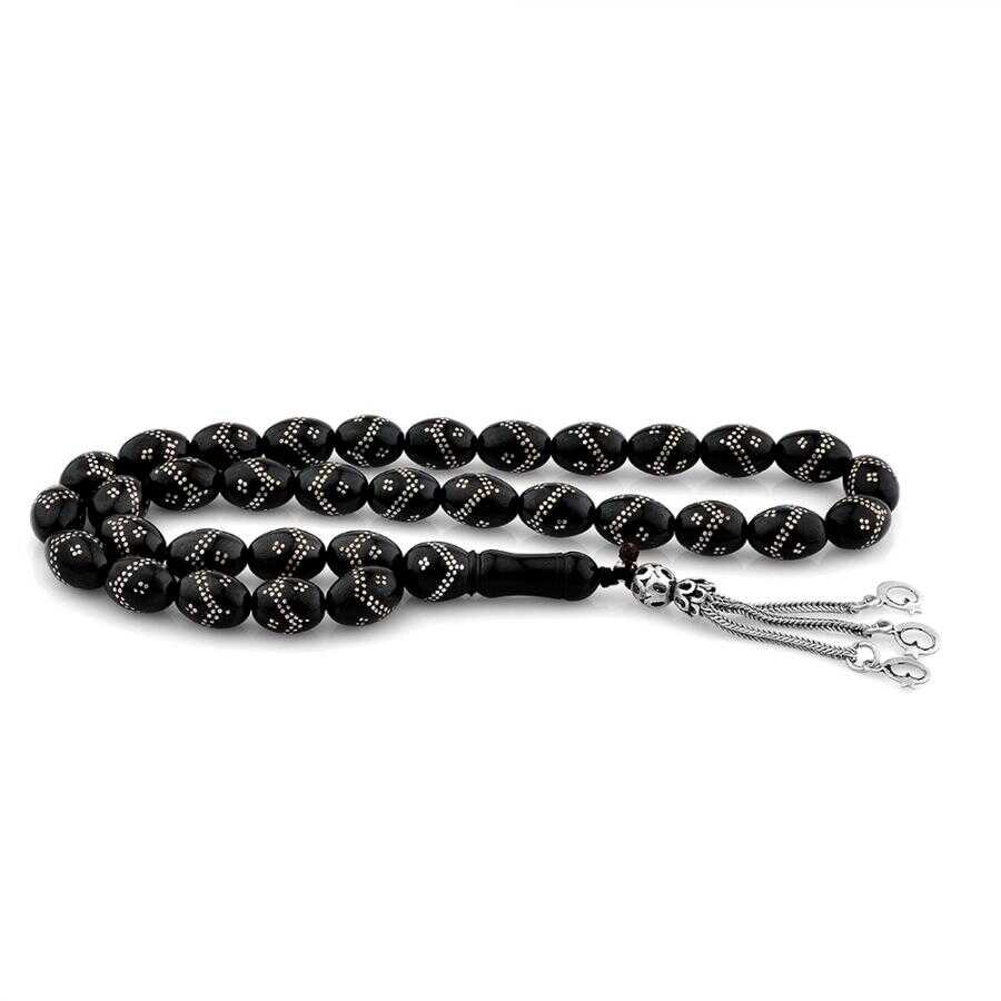 Ay Yıldız Püsküllü Oltu Taşı Tesbih