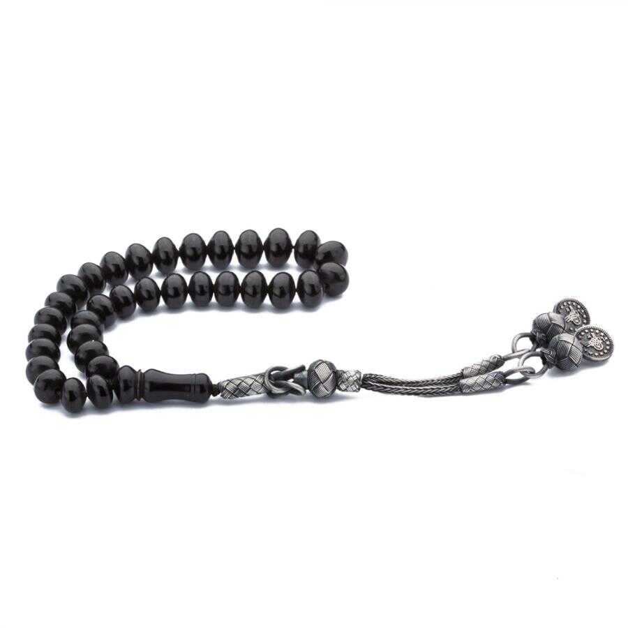 Erzurum'un en özel taşlarından birisi olan Oltu Ülkemizde çıkarılması zor olan değerli bir taştır. Oltu, gerginliği gideren ve sabır verici olması yönüyle bilinir. Usta ellerde yontularak basık model olarak tasarlanan bu Erzurum Oltusu tesbihe tamamı 925 ayar gümüşten oluşmuş, farklı püskül seçenekleri bulunur. 7 x 10 mm tane boyu ve 25 cm tam boy olarak basık kesim tasarlanan bu tesbihin imameden uzunluğu ise 14 cm'dir. İster günlük kullanım, ister koleksiyonluk, isterseniz de sevdikleriniz için satın alabileceğiniz bu tesbih, Babalar günü için de en özel hediye ve ömür boyu vazgeçemeyeceği aksesuarlarından biri olacaktır.