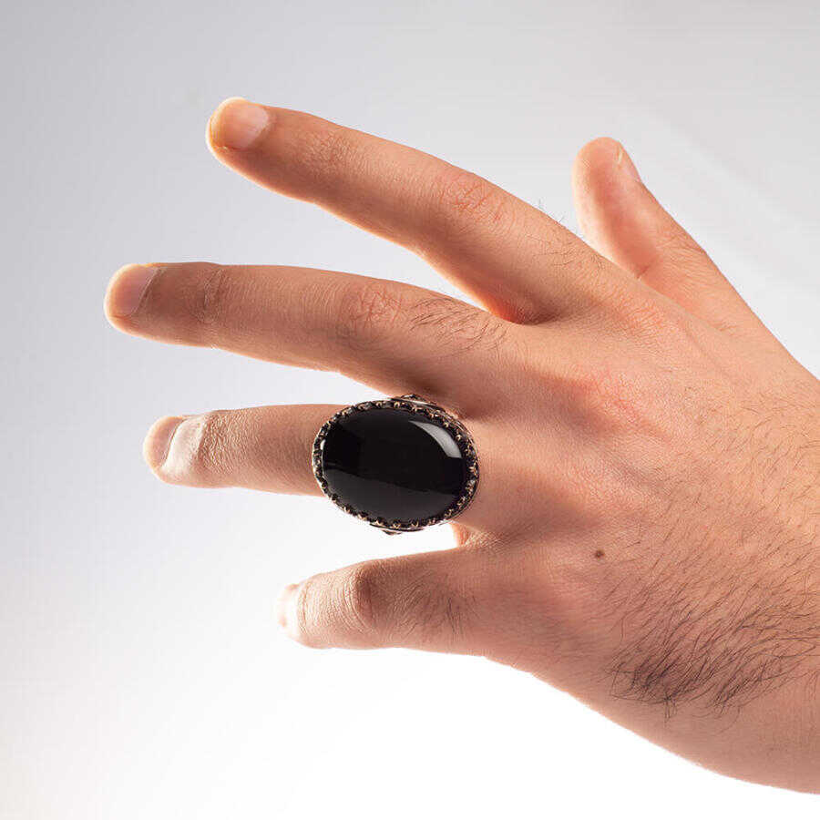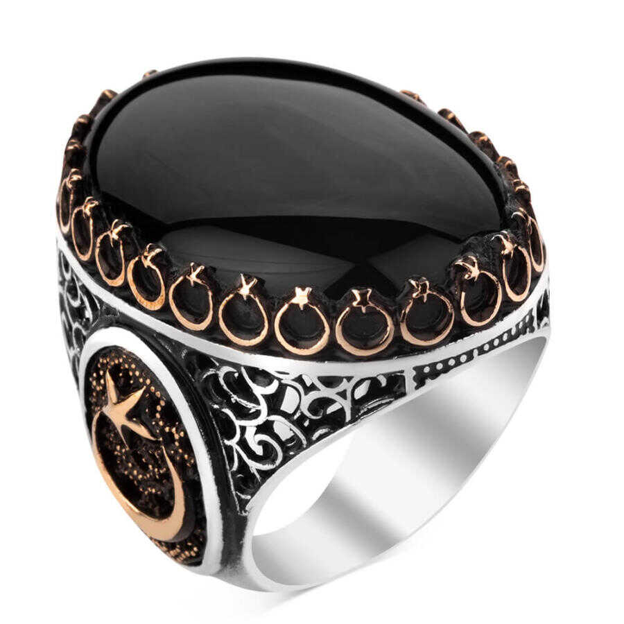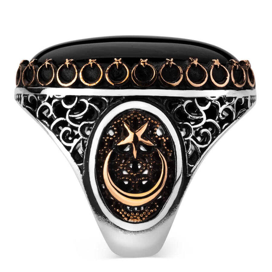 Büyük Siyah Oniks Taşlı Ay Yıldızlı Erkek Gümüş Yüzük Ürün Özellikleri