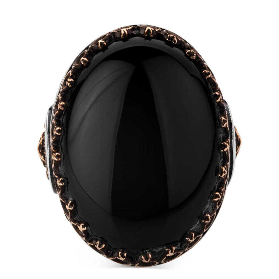 - Yüzük üzerinde siyah oniks taşı yer almaktadır.