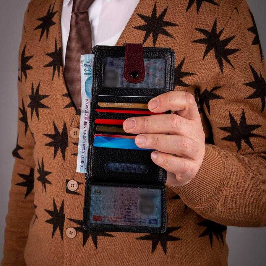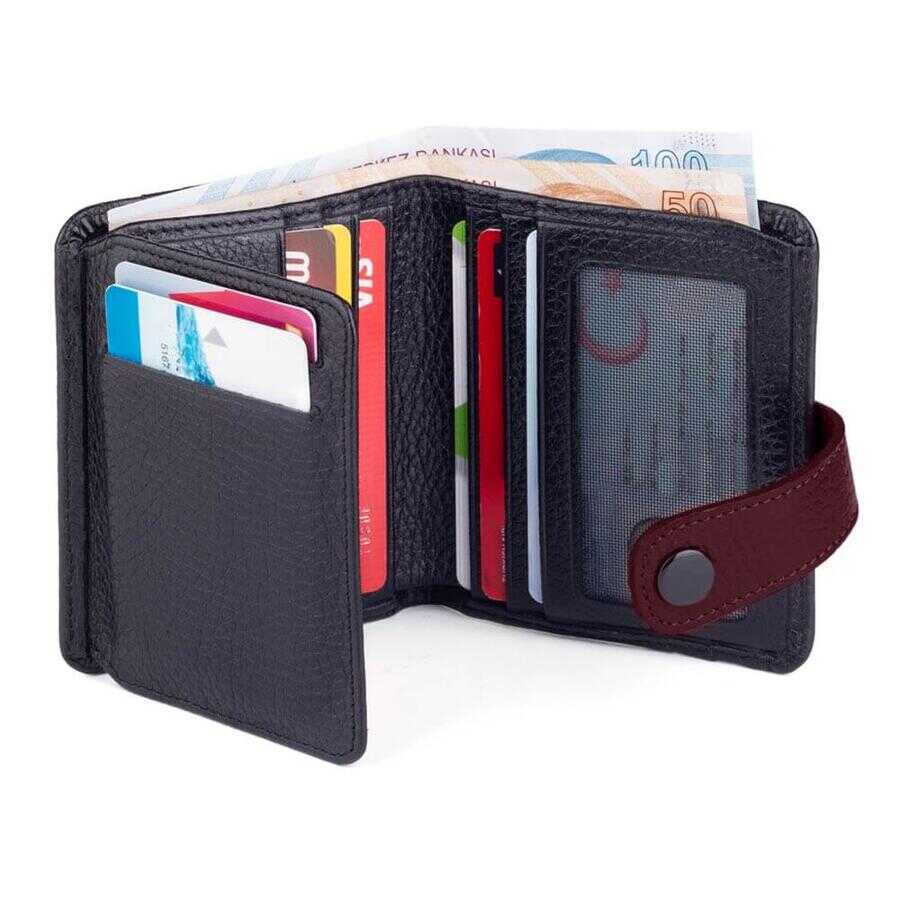 Çıtçıtlı Fonksiyonel Hakiki Deri Klasik Erkek Cüzdan Siyah-Bordo Ürün Özellikleri