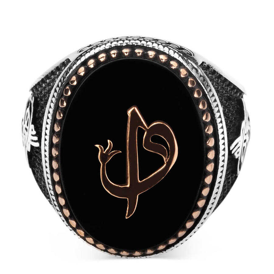 Yüzük üzerinde siyah oniks taş üstüne Arapça Elif-Vav işleme bulunmaktadır.