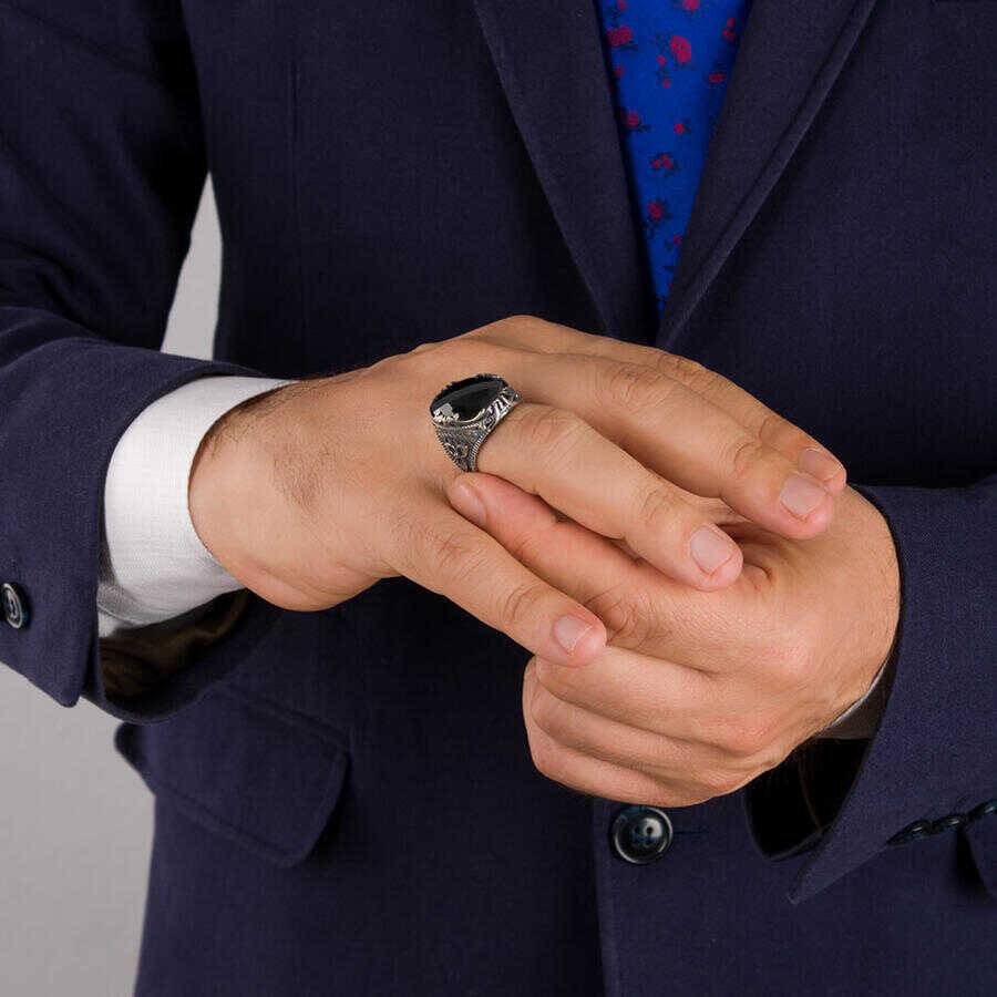 Fasetalı Siyah Zirkon Taş Kılıç Figürlü Gümüş Erkek Yüzük Ürün Özellikleri