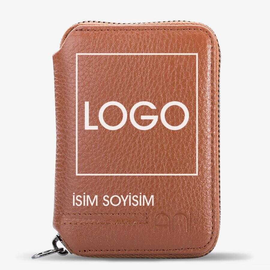 Hakiki Deri Fermuarlı İsme Özel Kartlık Cüzdan Taba