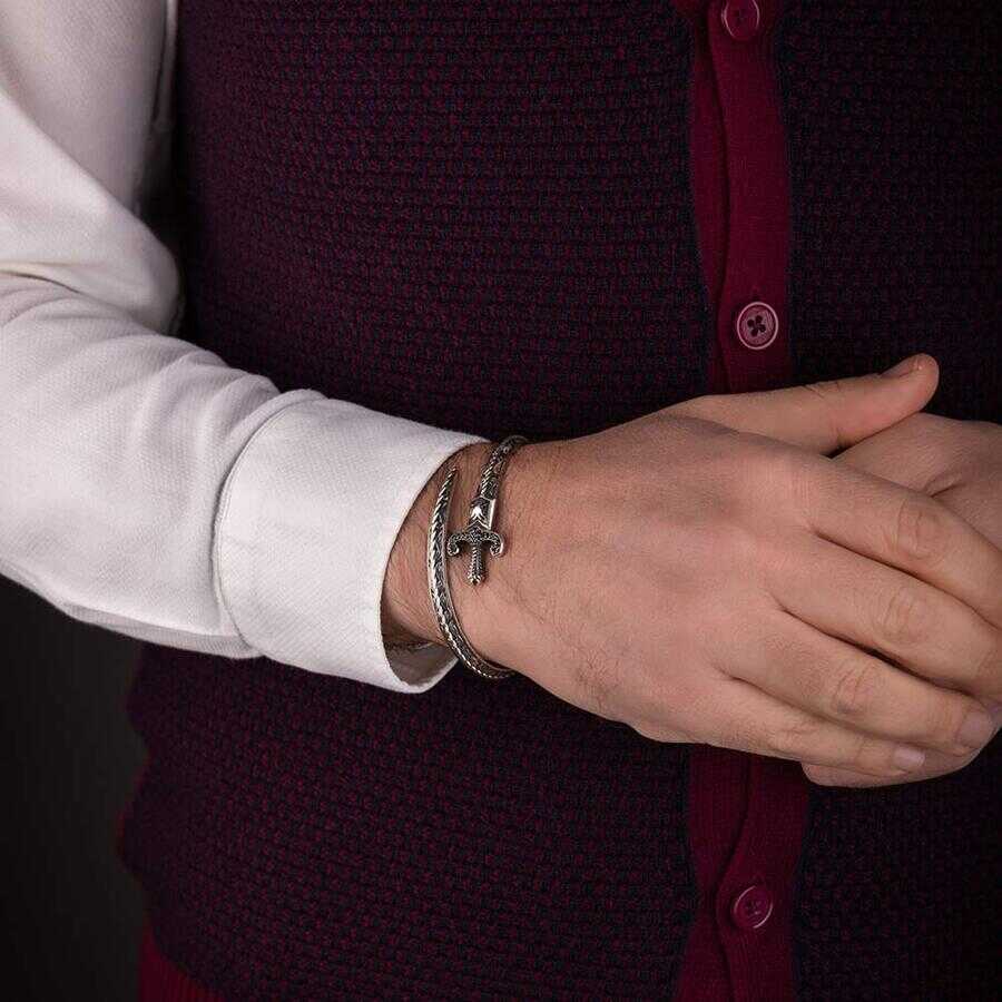 Kılıç Model 925 Ayar Gümüş Erkek Bileklik
