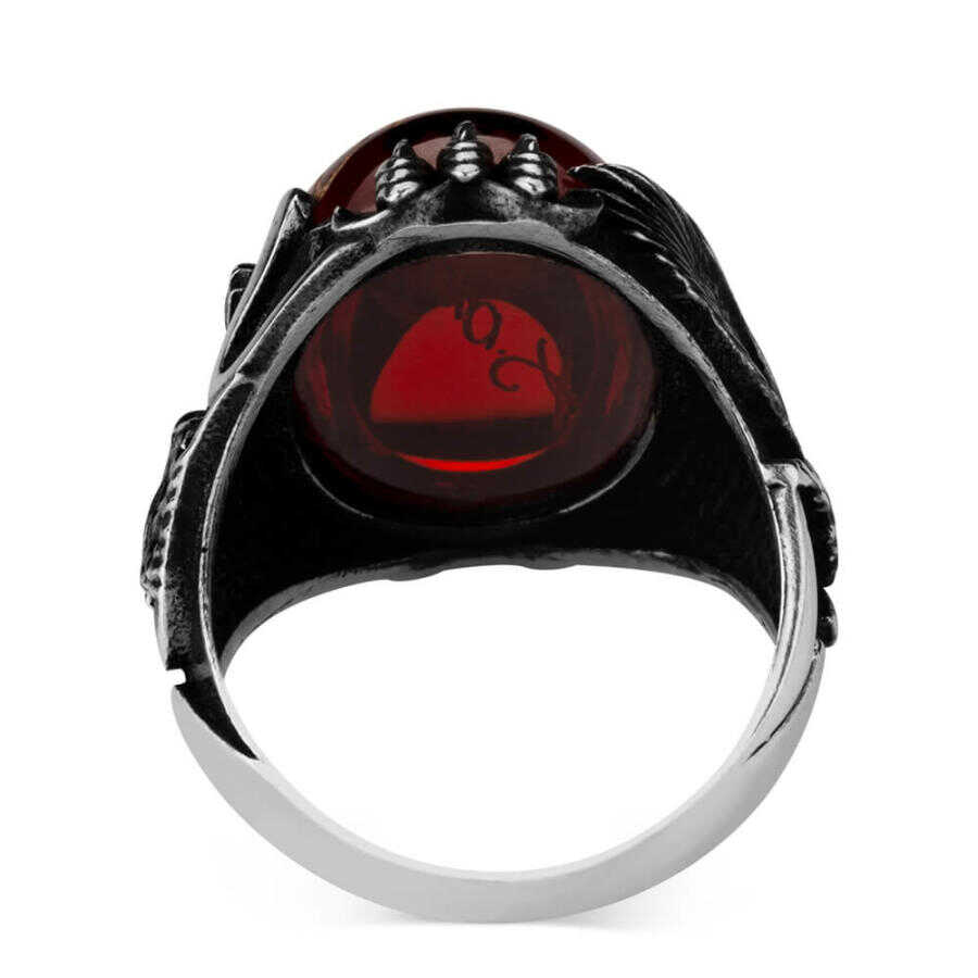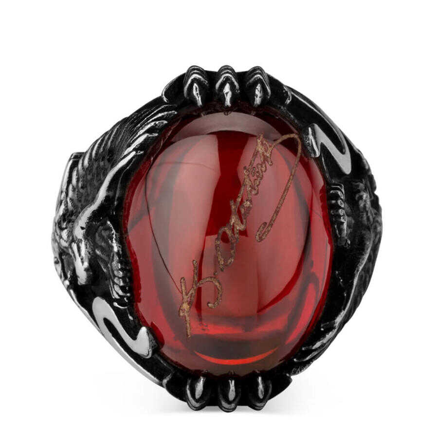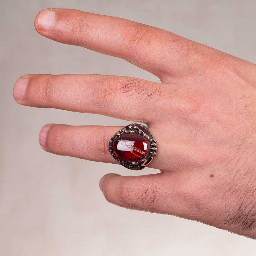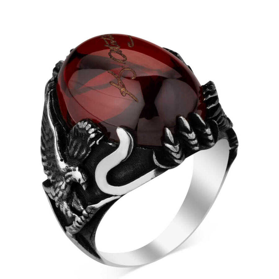 Kırmızı Zirkon Taş Üzerine Atatürk İmzalı Erkek Yüzük
