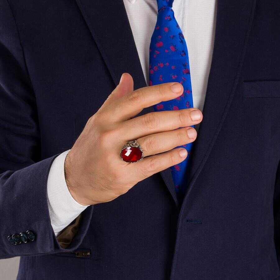 Osmanlı Arma Motifli Fasetalı Kırmızı Zirkon Taşlı Erkek Yüzük Ürün Özellikleri
