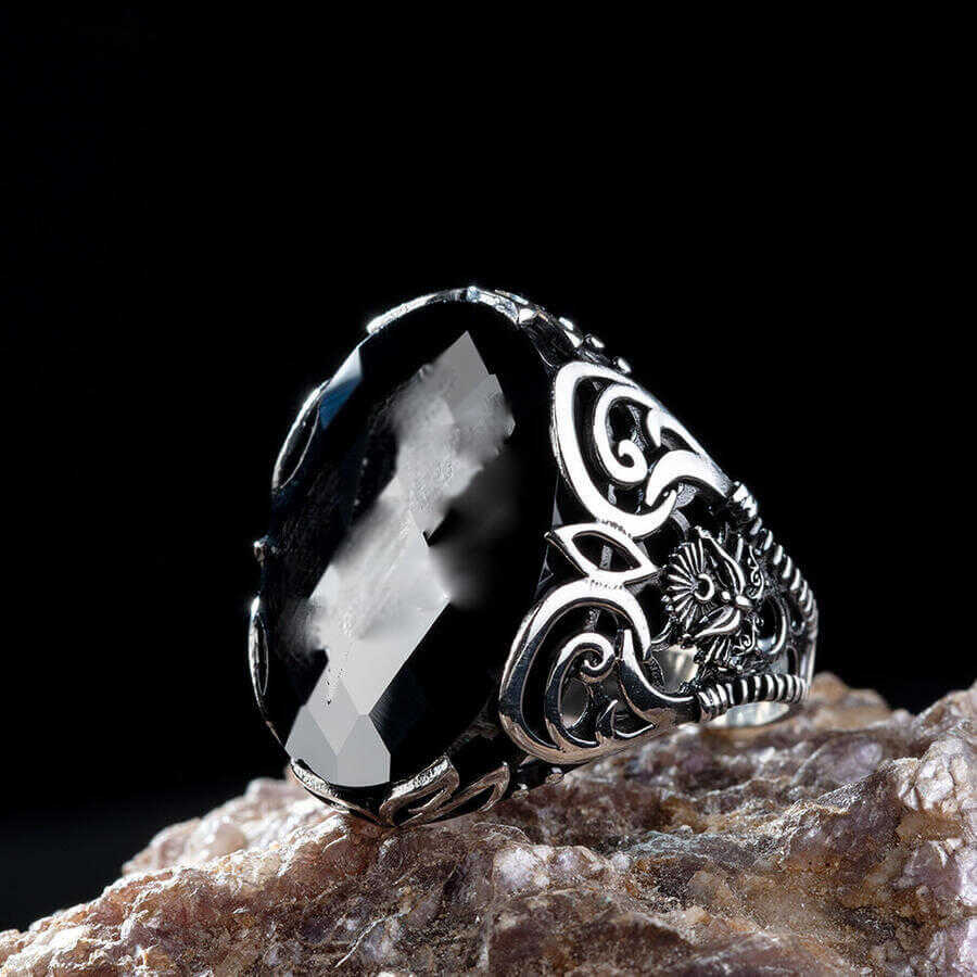 Osmanlı Armalı Siyah Zirkon Taşlı Erkek Yüzük