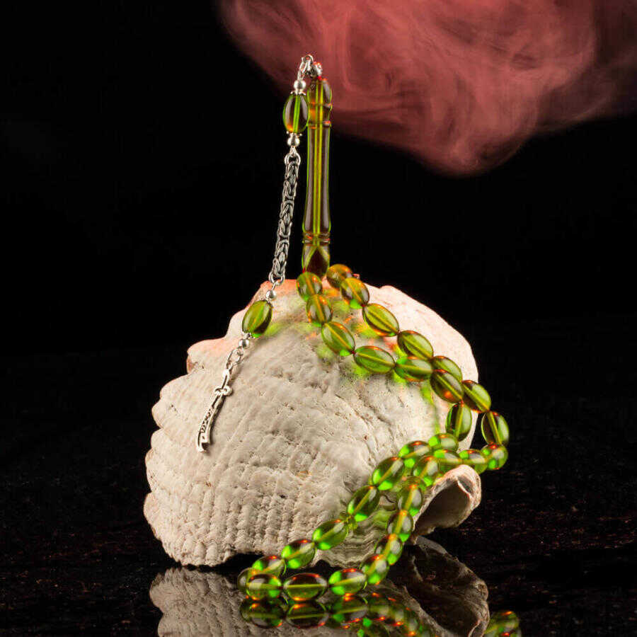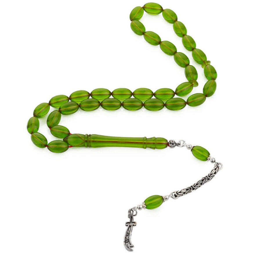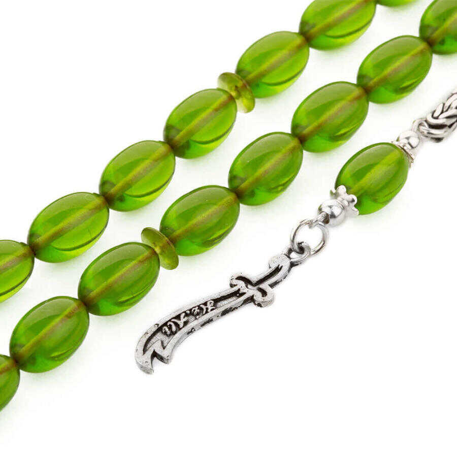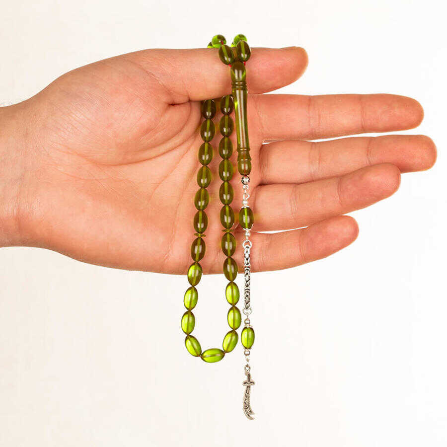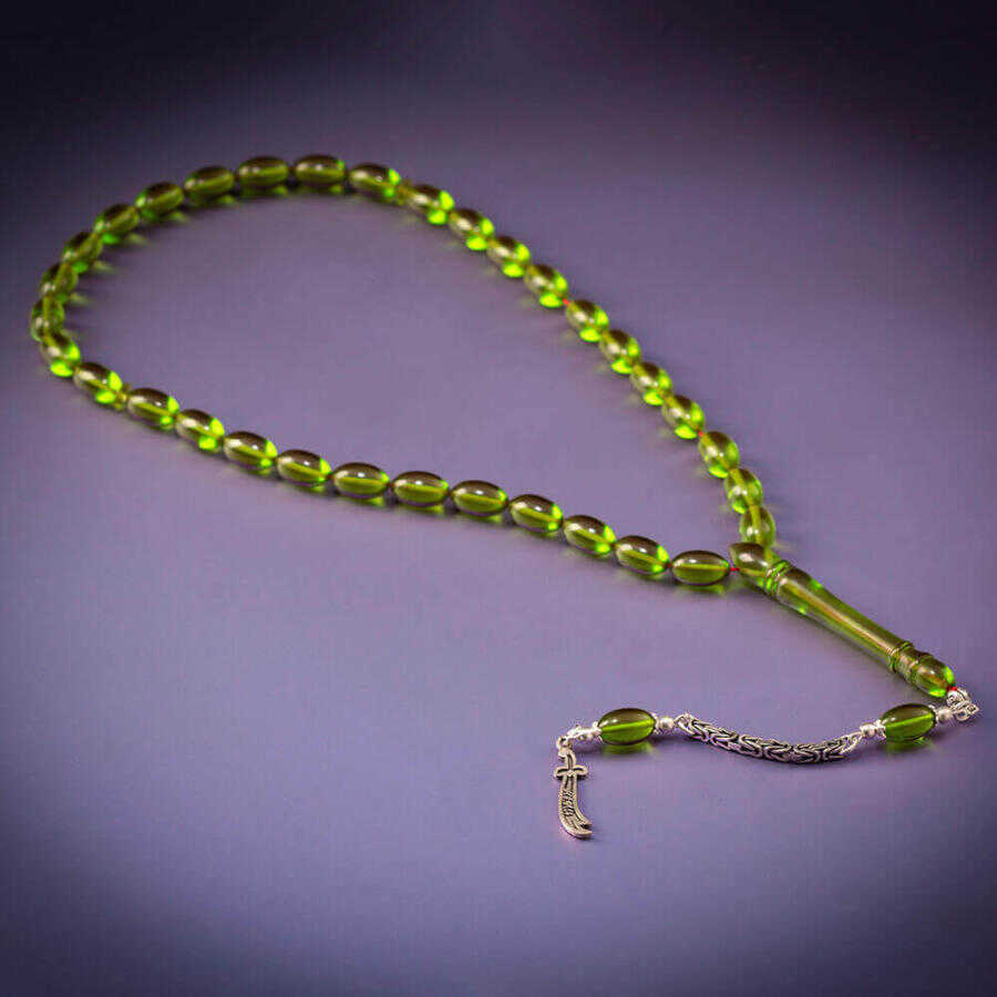 Sıkma Kehribar Arpa Kesim Zülfikar Kılıcı Püsküllü Yeşil Tesbih