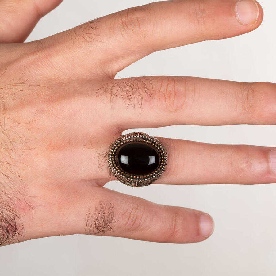 - Yüzük üzerinde siyah oniks taşı bulunmaktadır.