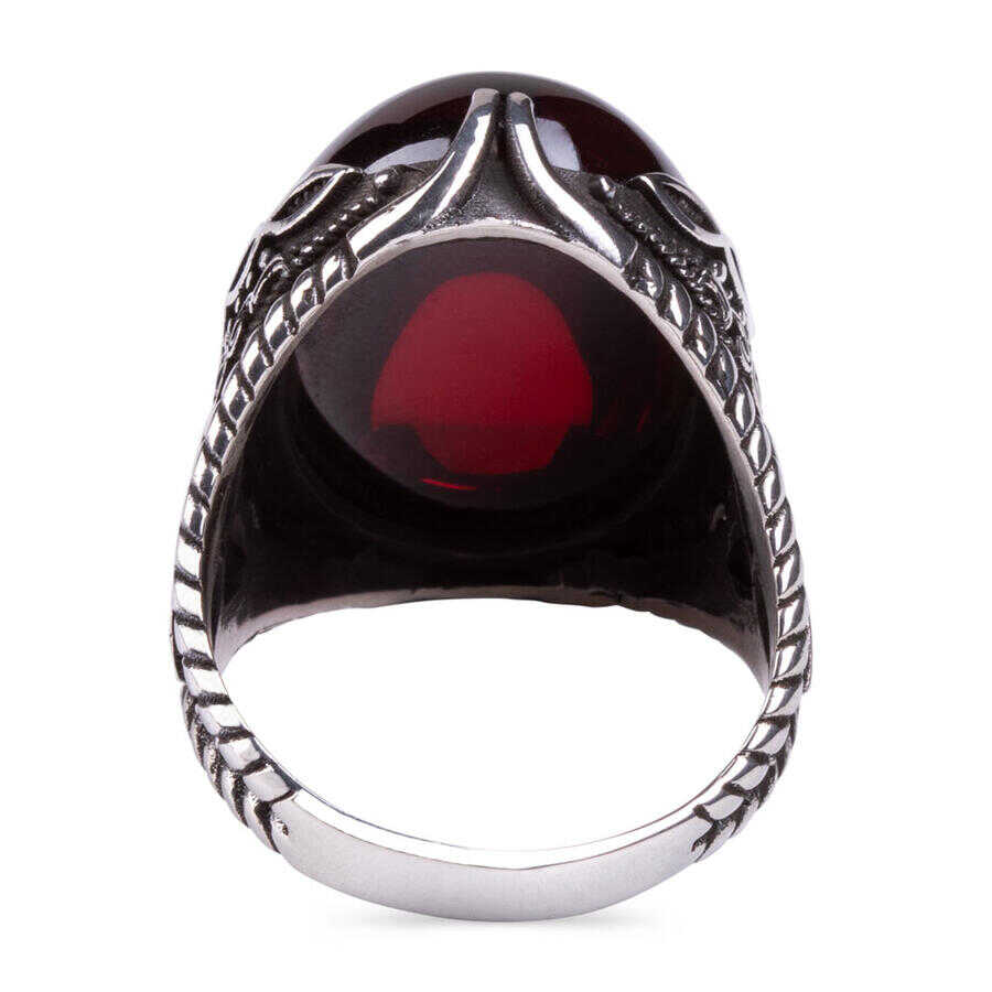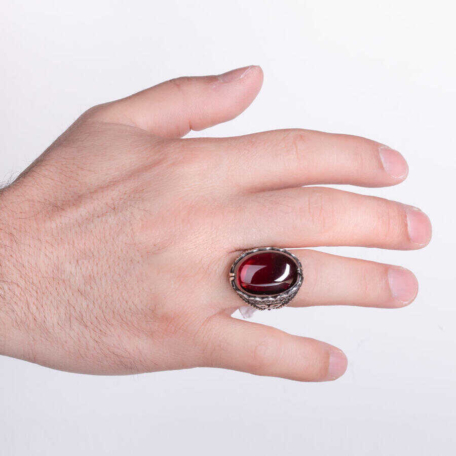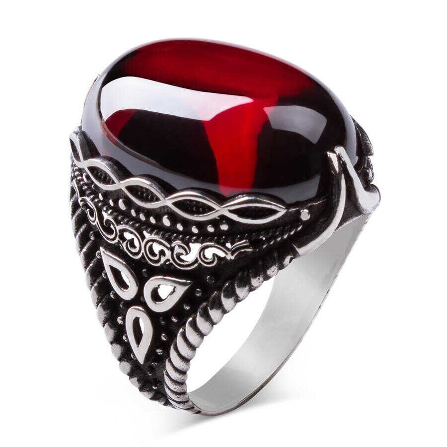 Trillium Motifli Kırmızı Oval Zirkon Taşlı Gümüş Erkek Yüzük Ürün Özellikleri