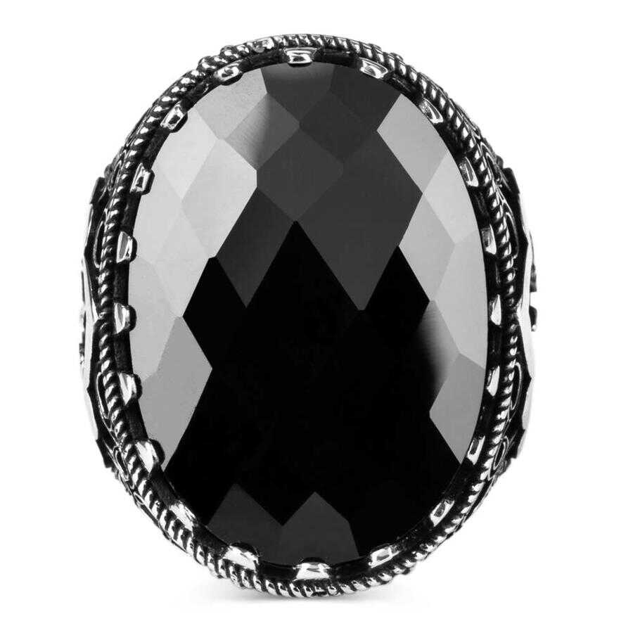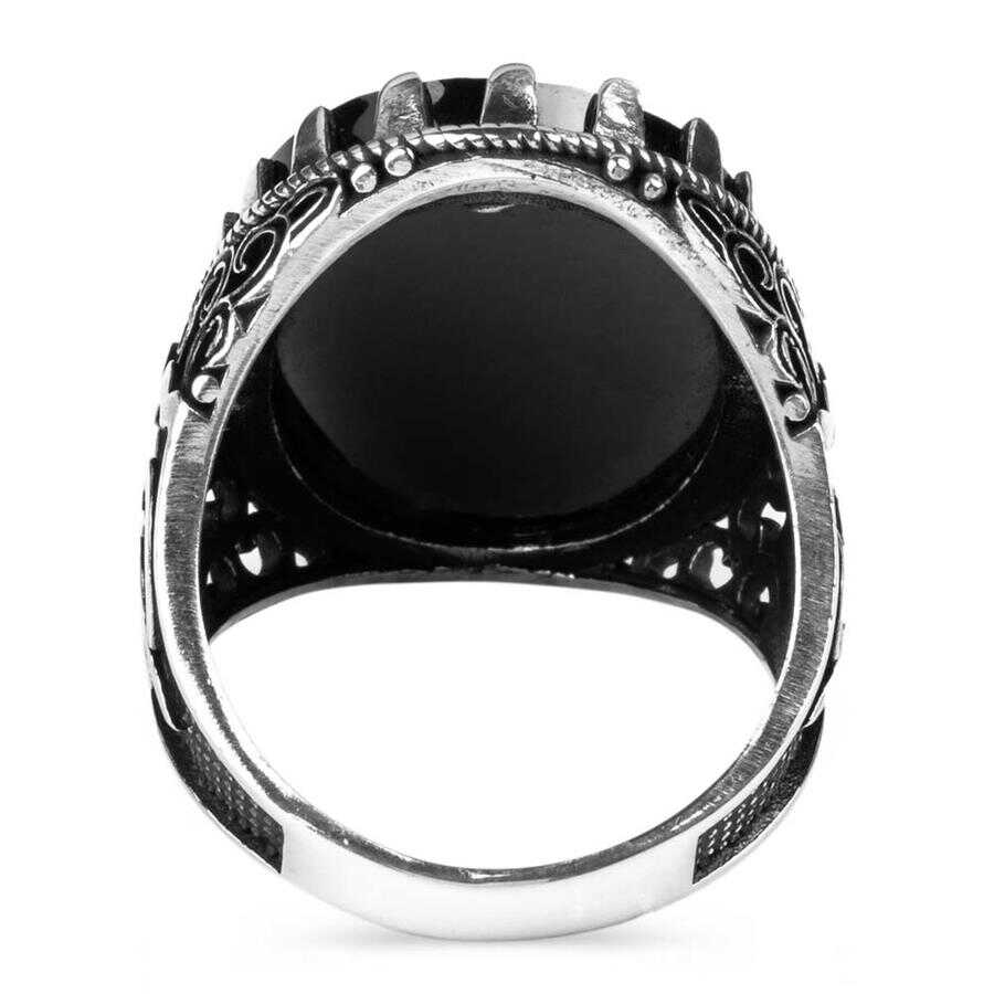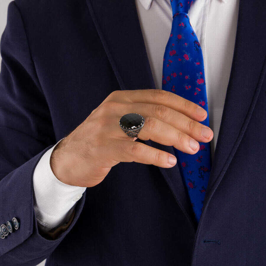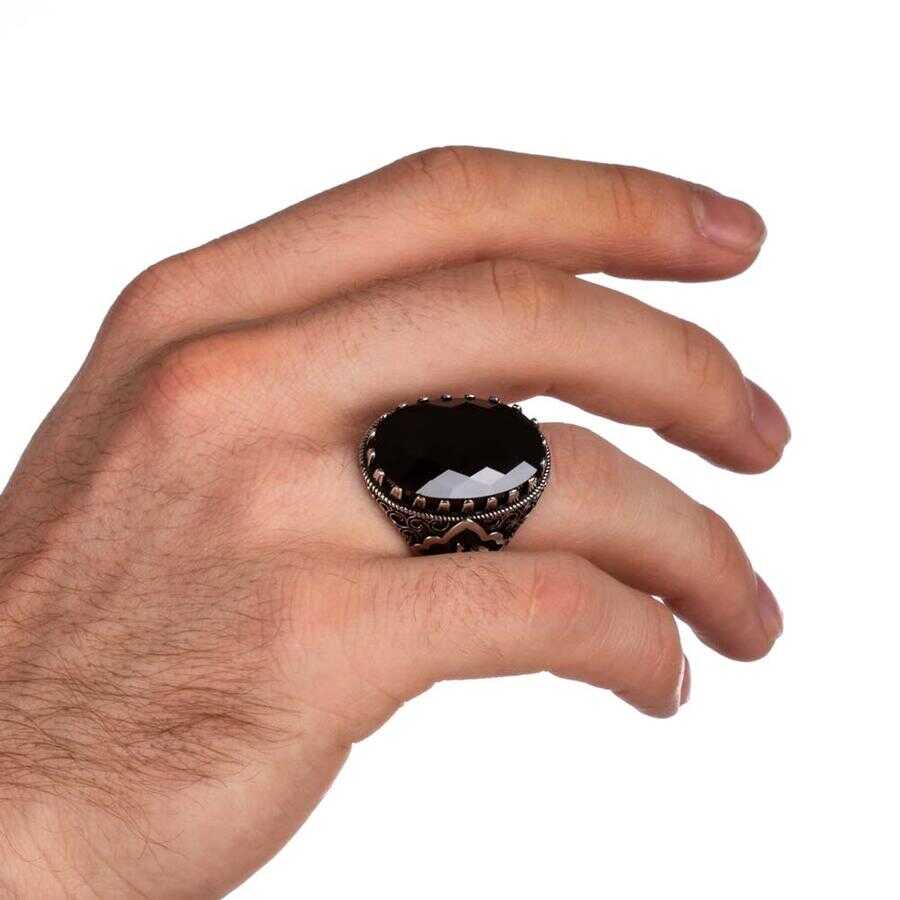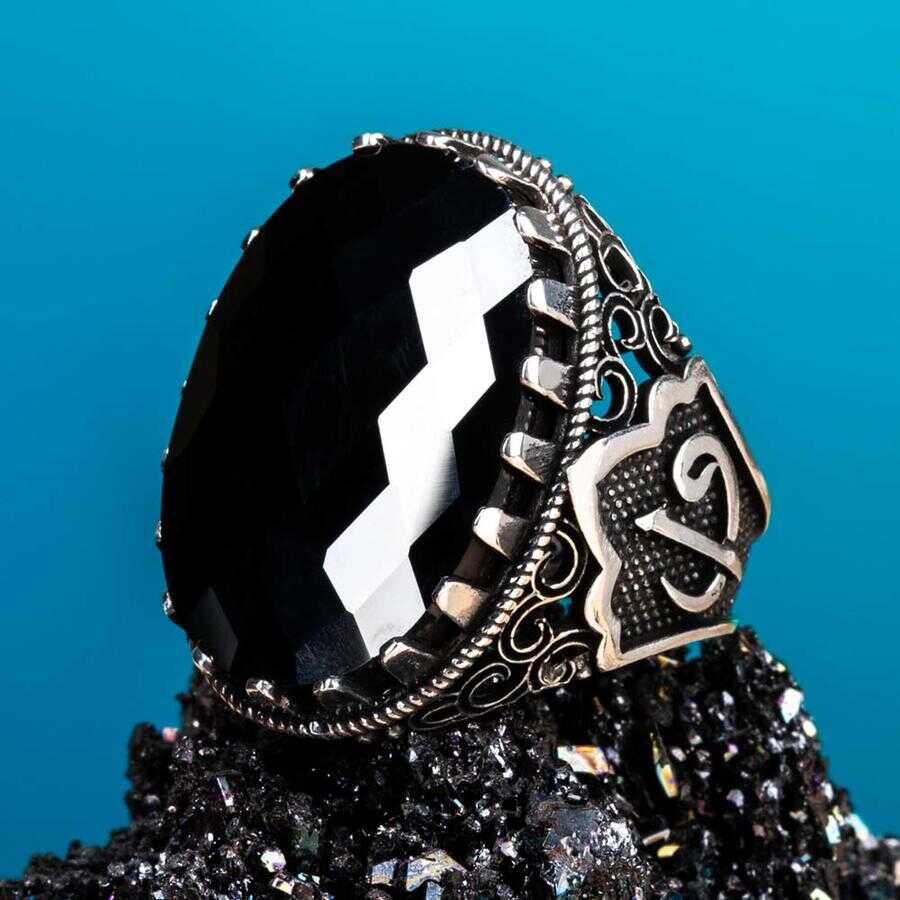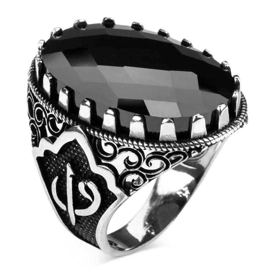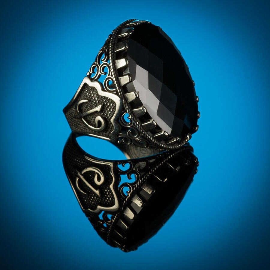Yanları Elif-Vav Figürlü Siyah Zirkon Taşlı Gümüş Erkek Yüzük Ürün Özellikleri