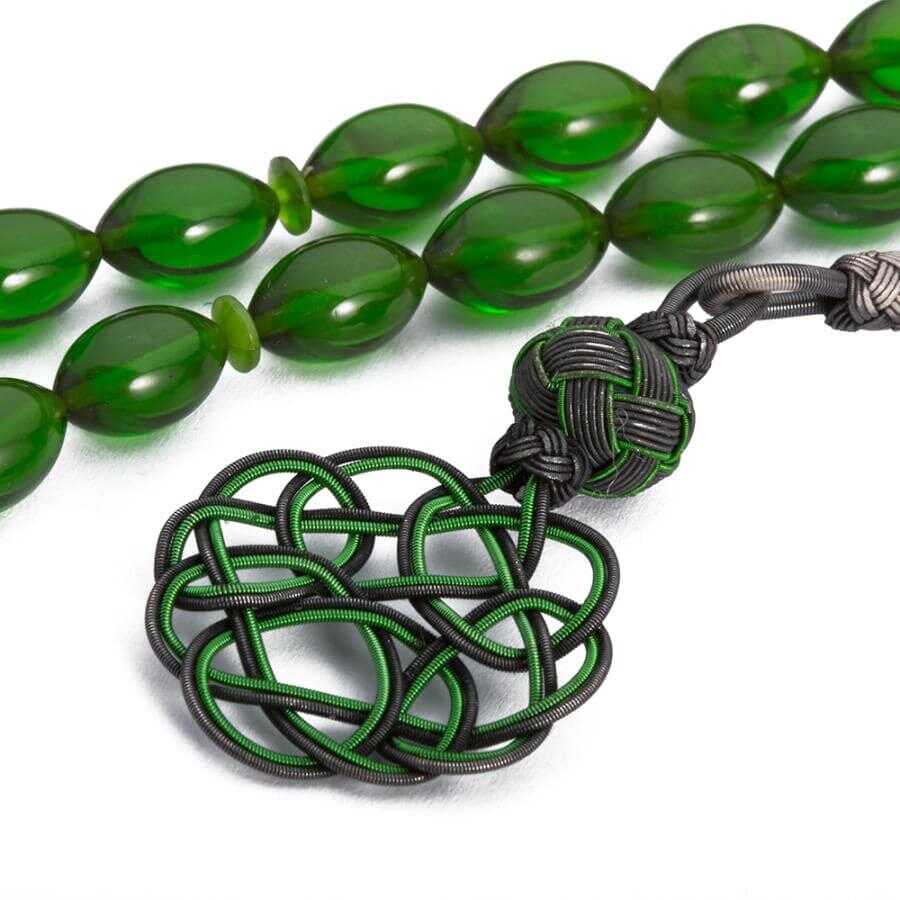 Yeşil Kazazlı Sıkma Kehribar Tesbih