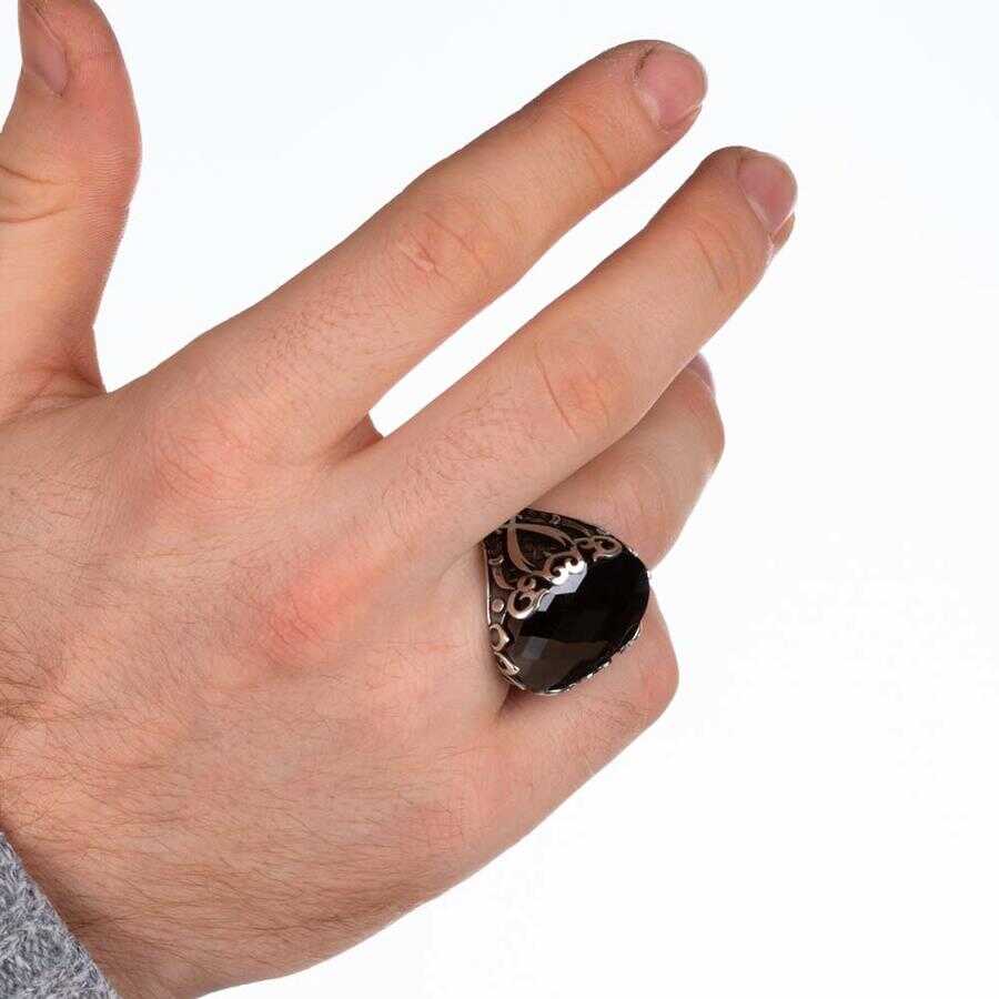 Zülfikar Motifli Siyah Zirkon Taşlı Gümüş Erkek Yüzük