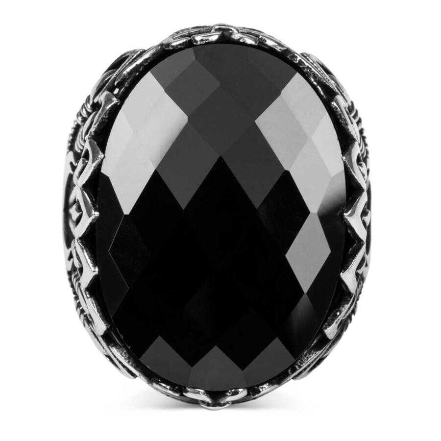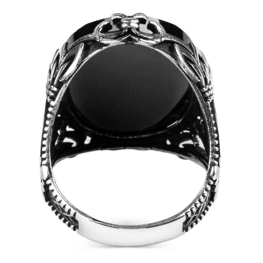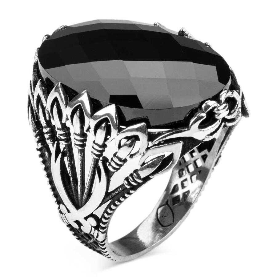 Zülfikar ve Mızrak Motifli Siyah Zirkon Taşlı Gümüş Erkek Yüzük