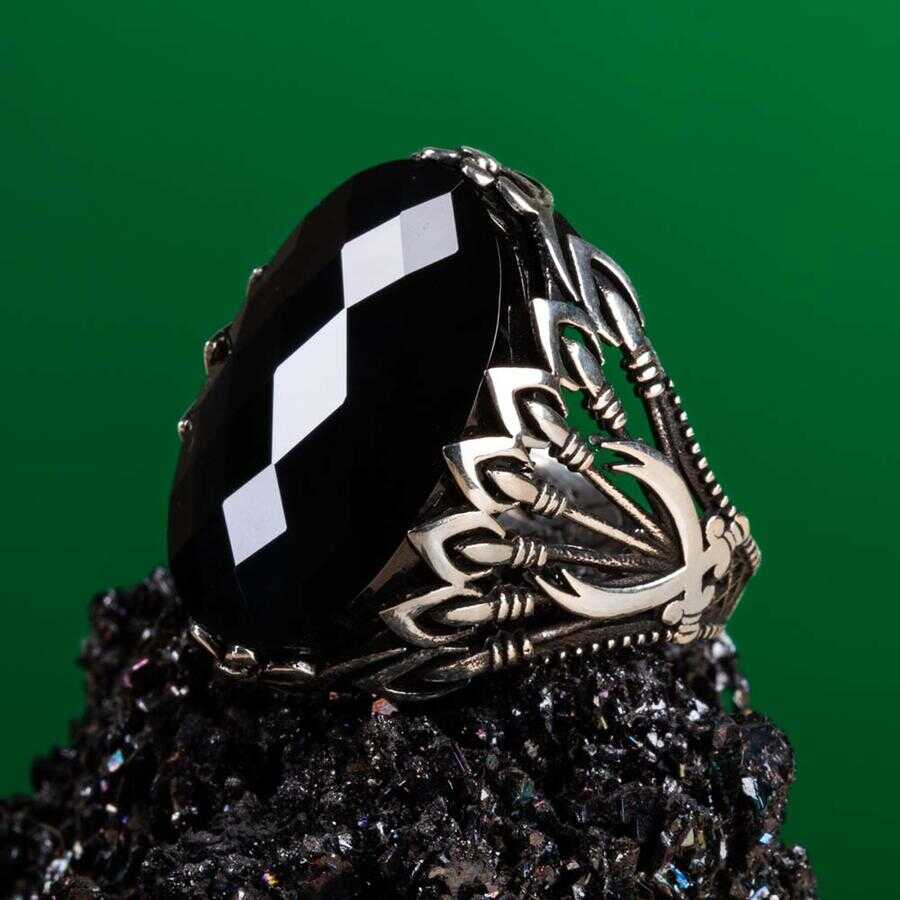 Hz. Ali Kılıcı Zülfikar ve Mızrak Motifli Siyah Zirkon Taşlı Gümüş Erkek Yüzük Ürün Özellikleri